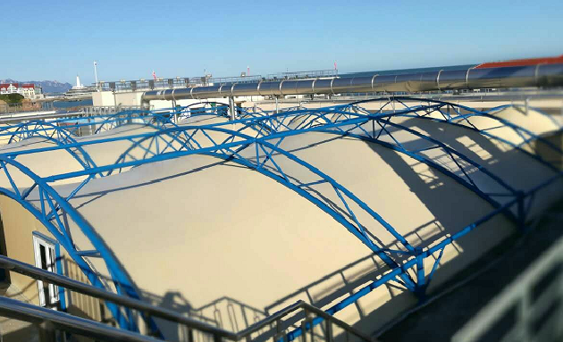 污水池内的废气成分复杂,对环境对人体的危害性都很大,所以对污水池废气的治理已经成为我国治理环境问题的首要目标,现在大多数企业都会选择反吊膜来对污水池加盖,进行废气处理。接下来展冀小编给大家介绍一下膜结构加盖和玻璃钢的区别。
